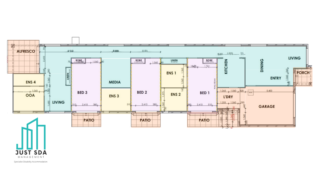 Purpose-built to High Physical Support standards, this brand-new home has been carefully designed to provide privacy, flexibility and everyday comfort. The residence features three spacious SDA bedrooms. Each room complete with a private ensuite that includes wall-mounted cabinetry, as well as large built-in storage cupboards and direct access to their own private patio areas. Allowing for both independence and personal retreat for the residents.