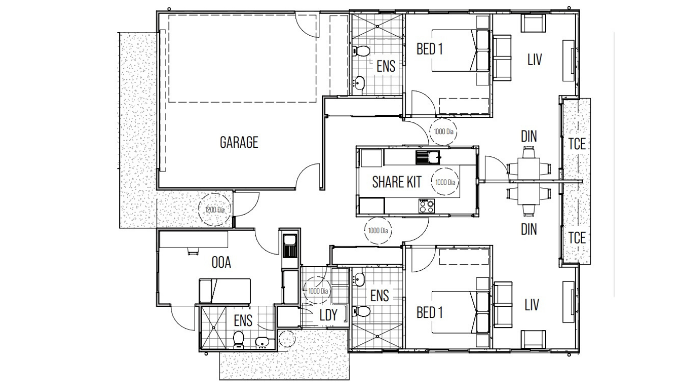 One of the three bedrooms functions as a dedicated OOA room, complete with its own private ensuite. The remaining two bedrooms also include their own spacious ensuites and built-in wardrobes, supporting comfort, privacy and daily independence. The layout features two distinct living spaces connected only by the central kitchen, there's essentially two homes under one roof. This considered design provides enhanced privacy and reduced interaction between tenants when required, supporting personalised routines and independence. Each living zone includes its own lounge, dining area and outdoor terrace, with a shared accessible laundry ensuring practicality and ease.